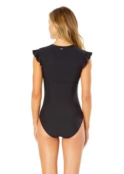 Women’s Denim Dot Wrap Tie One Piece Swimsuit(Womens Denim Dot Wrap Tie One Piece Swimsuit)