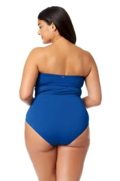 Women’s Plus Denim Dot Wrap Tie Tankini Swim Top(Womens Plus Denim Dot Wrap Tie Tankini Swim Top)