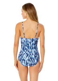 Women’s Tie Dye Ikat Ring Plunge Tankini Swim Top(Womens Tie Dye Ikat Ring Plunge Tankini Swim Top)