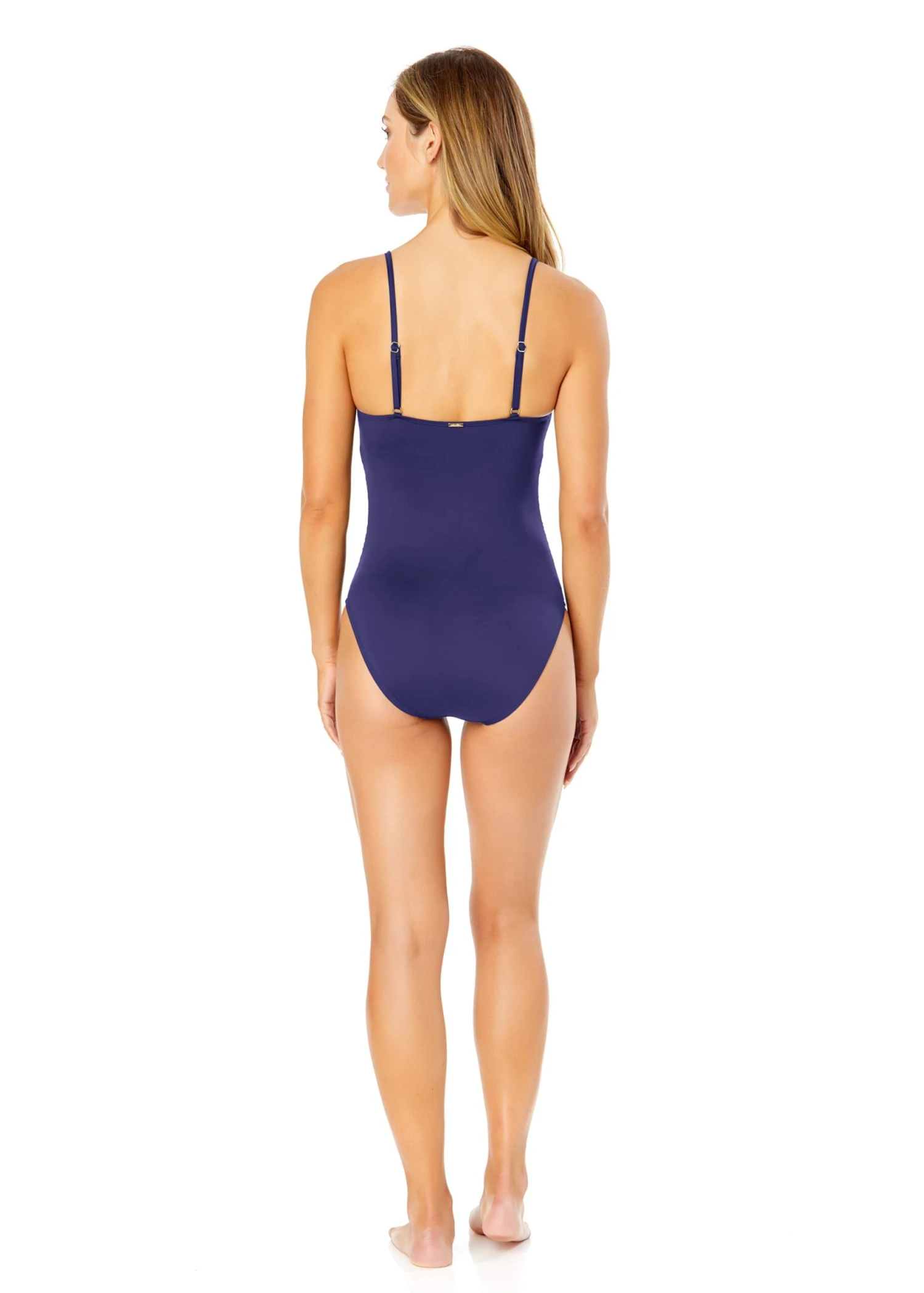Brighten up the summer in our Shirred Lingerie Maillot One Piece Swimsuit. This maillot one piece swimsuit exudes chic sophistication, featuring lingerie-style thin straps and small gold ring detailing on both front shoulder straps for an elegant look. Adjustable back straps provide a comfortable, customized fit, while shirred details in the torso area help create a flattering contour. Whether you’re sunbathing or taking a dip, this maillot swimsuit will have you looking your best this season.