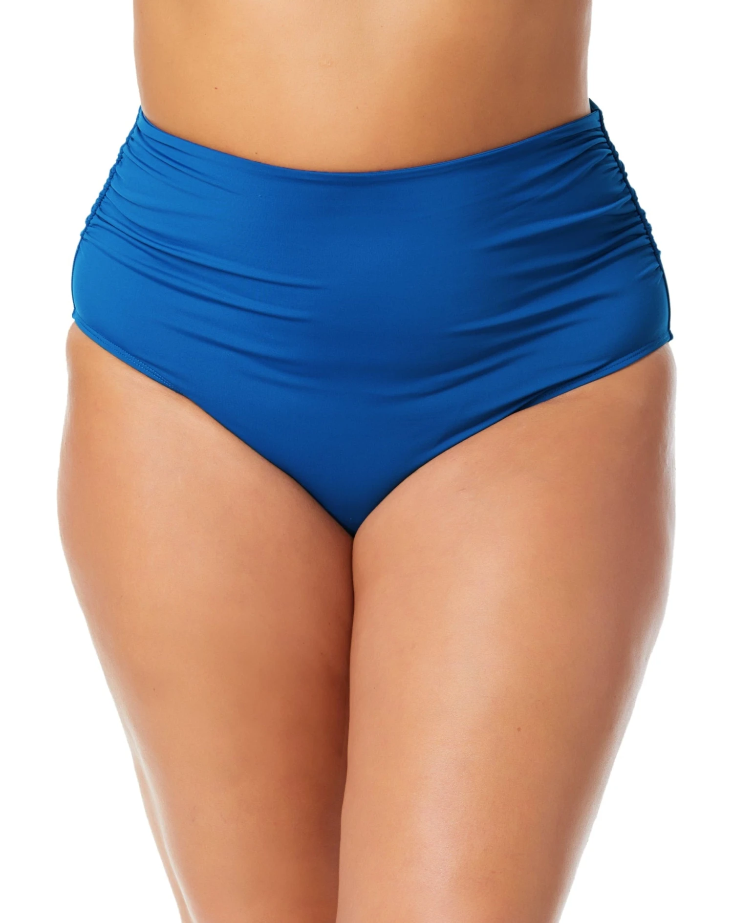 Soak up some sunshine in our Plus Size High Waist Shirred Bottom. This high waisted bottom will be a stand out while you lounge at the beach thanks to its vibrant and versatile color. A stylish high waist cut flatters your curves while providing medium coverage for your bottom, giving you both a pleasant and comfortable fit. With this swim bottom, you can feel confident when you relax by the pool or dive in the pool. Pair it with an Anne Cole bikini top for a breezy look!